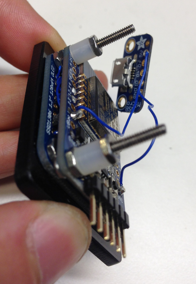Once you've attached the MicroUSB breakout you can cut down the excess header on the V pin and GND pin. The circuit is assembled!