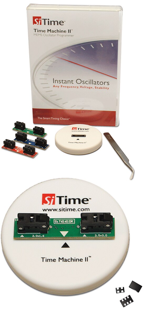 The Time Machine II is a complete portable programmer kit for SiTime’s MEMS oscillators. This programmer allows easy configuration of field programmable oscillators to exact specifications in seconds. Designers can configure frequency, voltage, stability, and special features of MEMS oscillators (such as spread spectrum and adjustable rise and fall times), resulting in faster design time and optimized system performance.