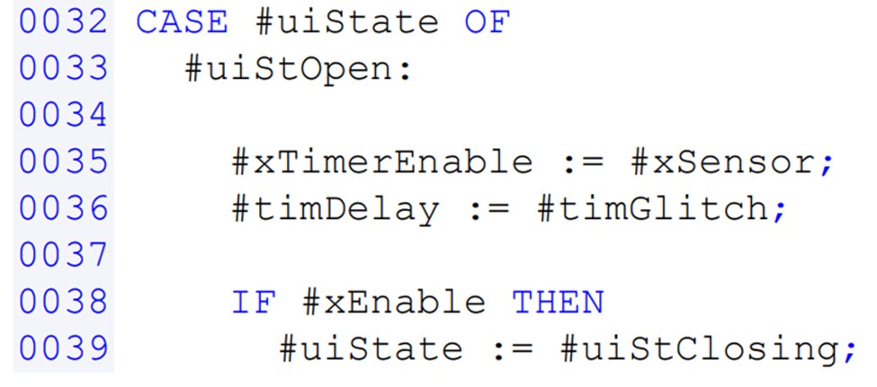 Structured Text (ST) is a text-based programming language for programming PLCs that more closely resembles common computer programing languages such as C++ or Pascal. Due to ST's syntax structure and list of high-level programming statements, the implementation of coding loops, logical value calculations, and data handling routines is easily accomplished which makes it a good starting point for PLC programmers that have background in more traditional computer programming.