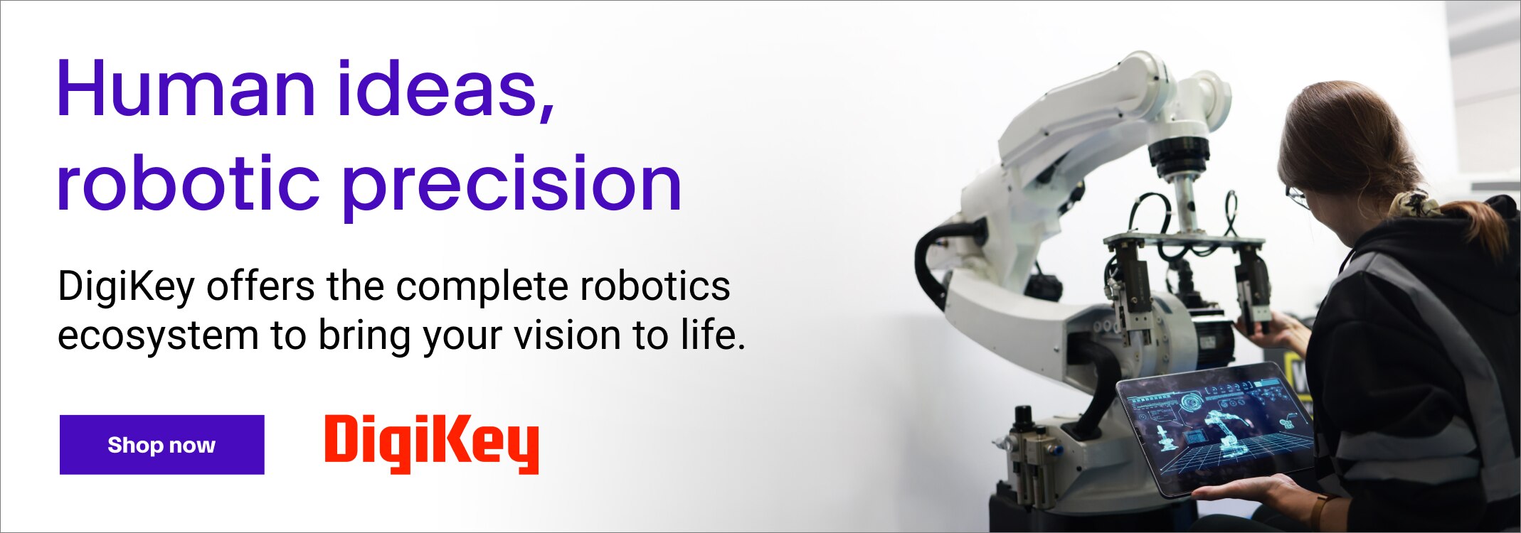 The use of robotic ecosystems in industrial automation is steadily growing. In this rapidly growing space, DigiKey has a wide range of robotic systems and components in stock and available for next-day delivery.