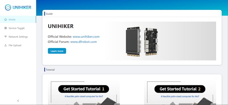 Power on your Unihiker by connecting it to a power source using the USB-C port. Connect to the Unihiker's Wi-Fi hotspot. The SSID should be "Unihiker-XXXX" where XXXX are the last four characters of the device's MAC address. Open a web browser and navigate to http://192.168.4.1. This will open the Unihiker web interface. Follow the on-screen instructions to connect your Unihiker to your local Wi-Fi network. Once connected, the Unihiker will display its IP address on the screen. Note this down for future use.